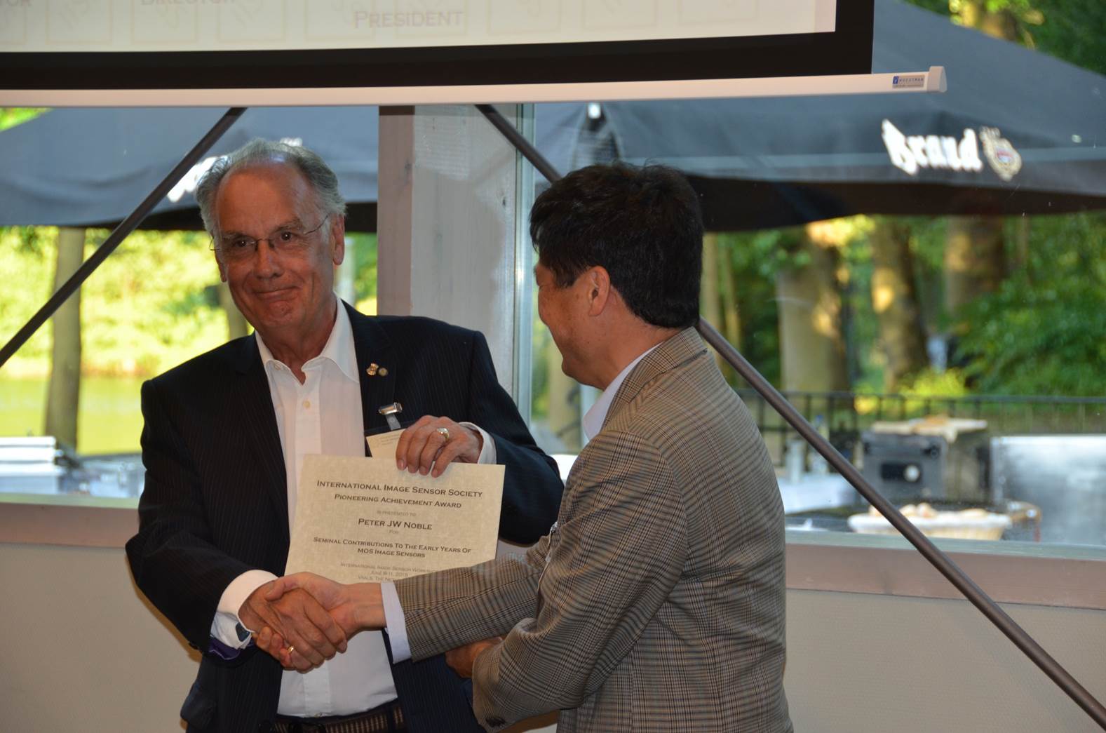 Vladimir Koifman congratulated by Pierre Magnan for 10th anniversary of the Image Sensors World blog